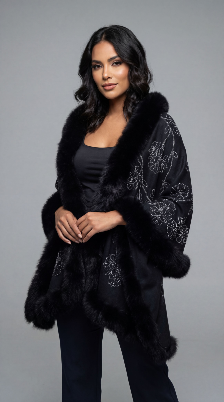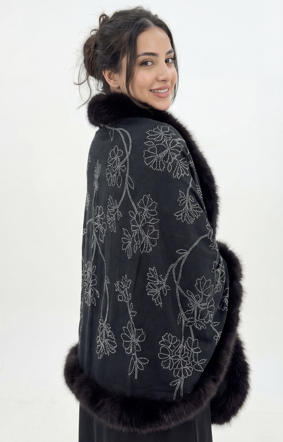 Pashmina Fur Shawl With Floral Crystal Design