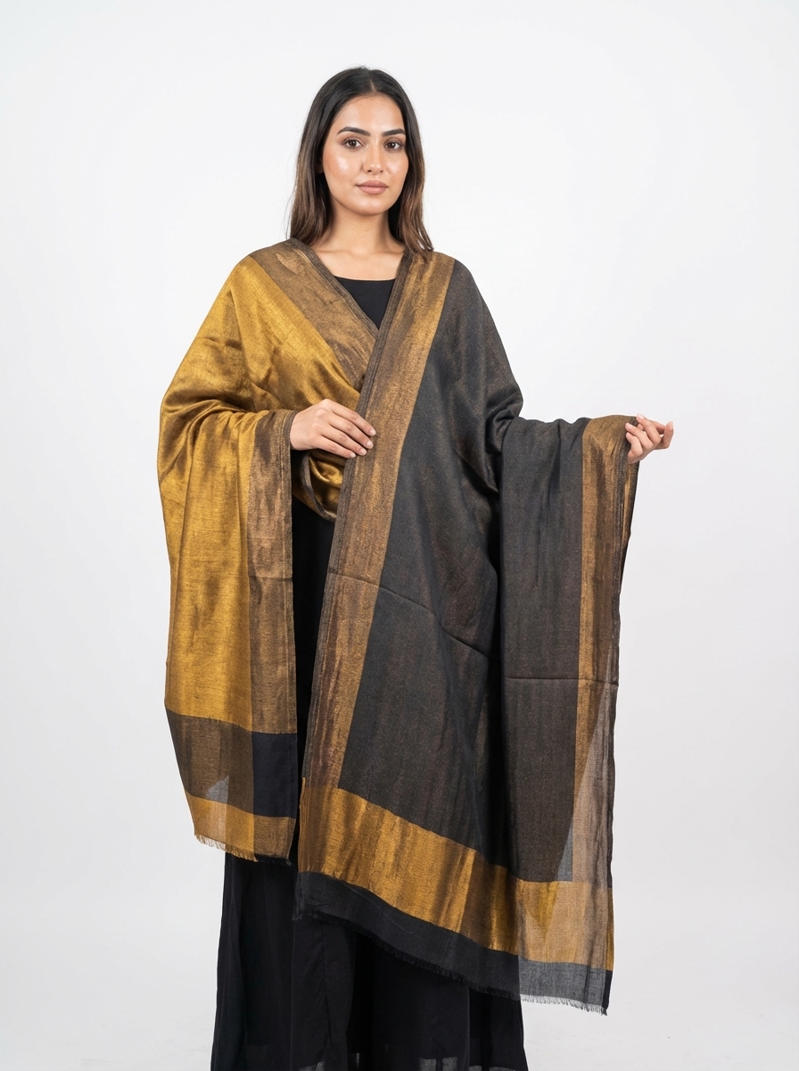 • Premium Metallic Zari Weave – Crafted with a luxurious zari woven pattern, giving the stole a subtle shimmer and elegant texture that enhances both traditional and modern outfits.